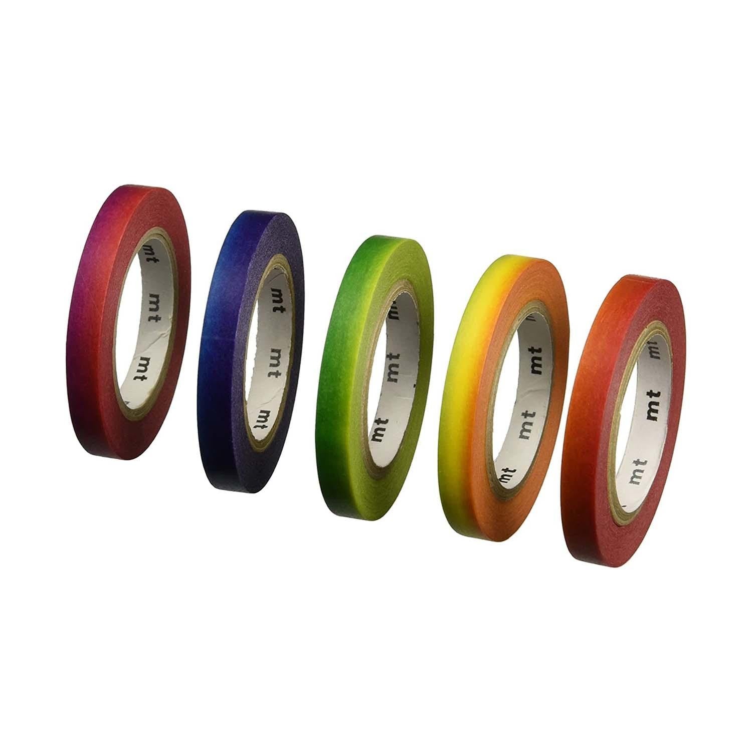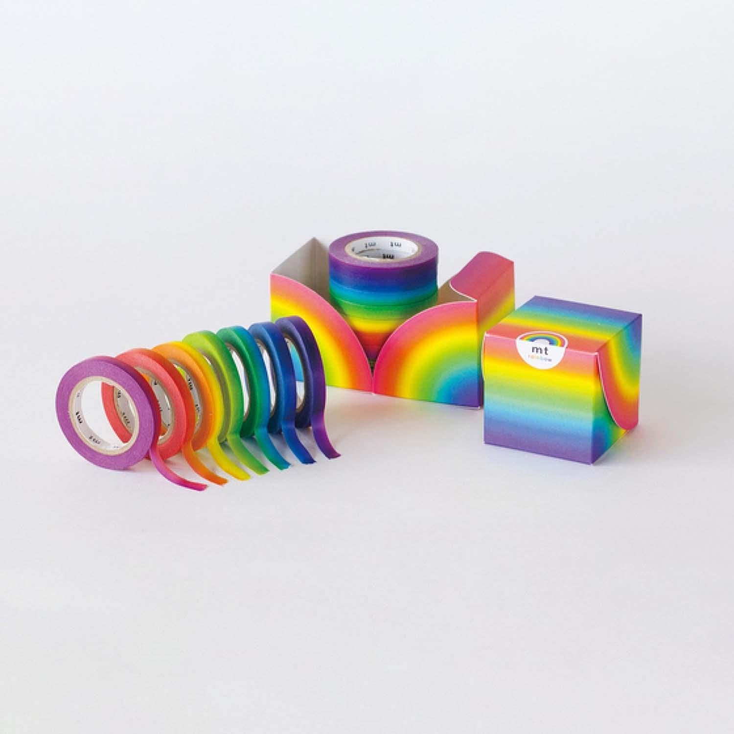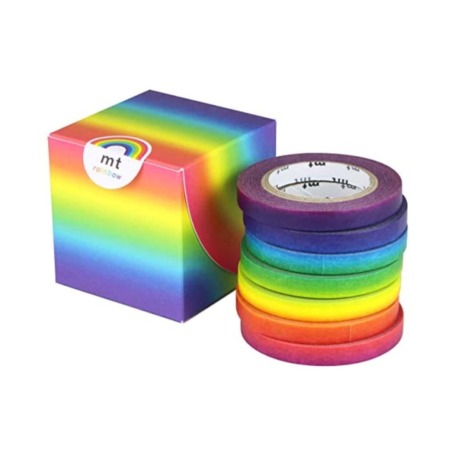 Este set Rainbow incluye 7 washi tapes en los que los colores del arcoiris se van degradando y fusionando. Con este set puedes crear unas composiciones muy originales.