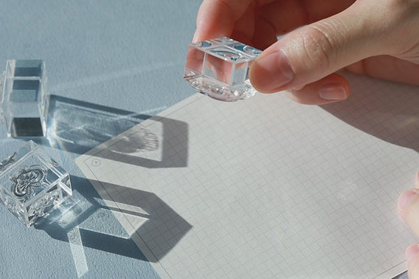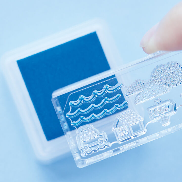 El sello está fabricado íntegramente con piezas transparentes. Gracias a ello, es más fácil estampar en el lugar exacto ajustando la posición.