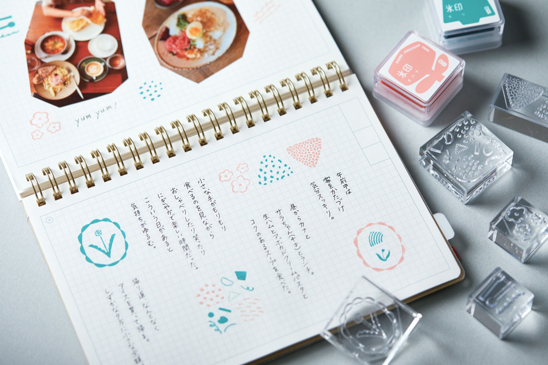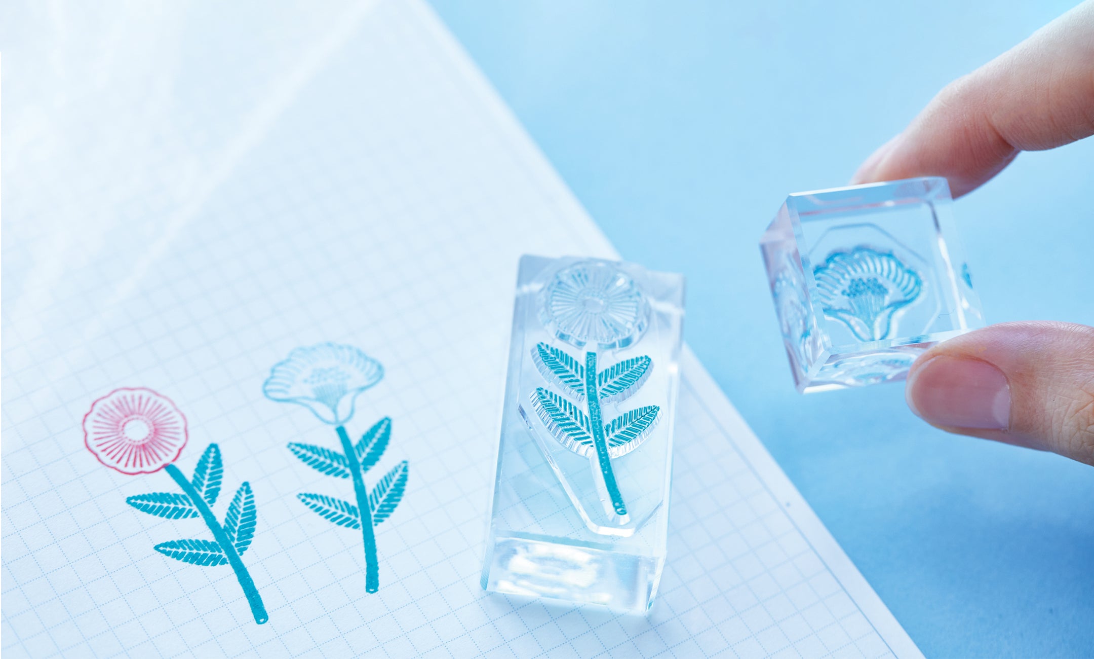 También puedes comprobar fácilmente si el sello está bien entintado. También puedes crear composiciones utilizando varias tintas.