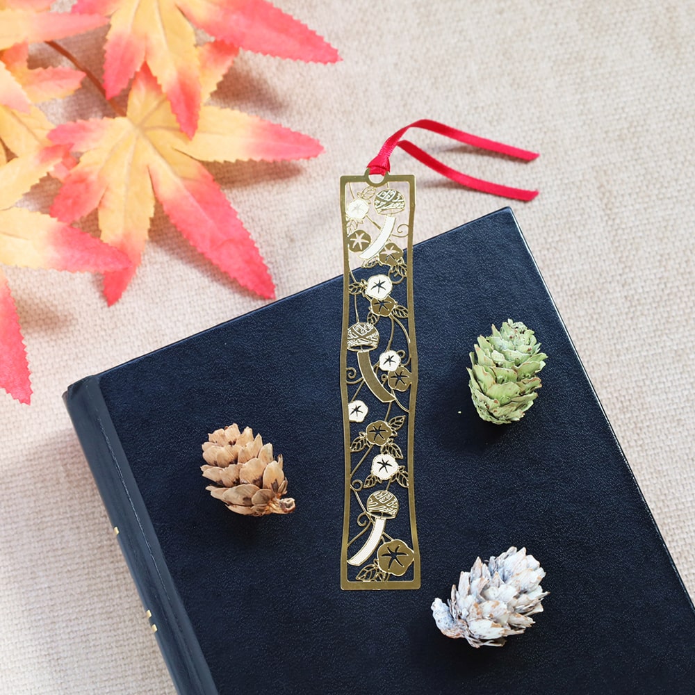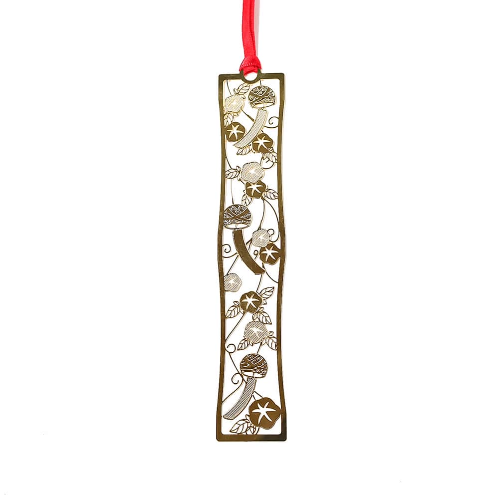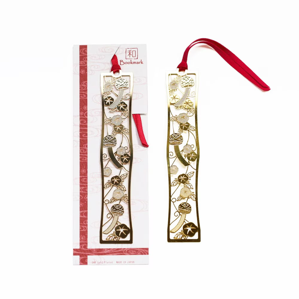 Marcapáginas que presentan diseños japoneses modernos con motivos icónicos como las flores morning glory y las campanillas de viento.