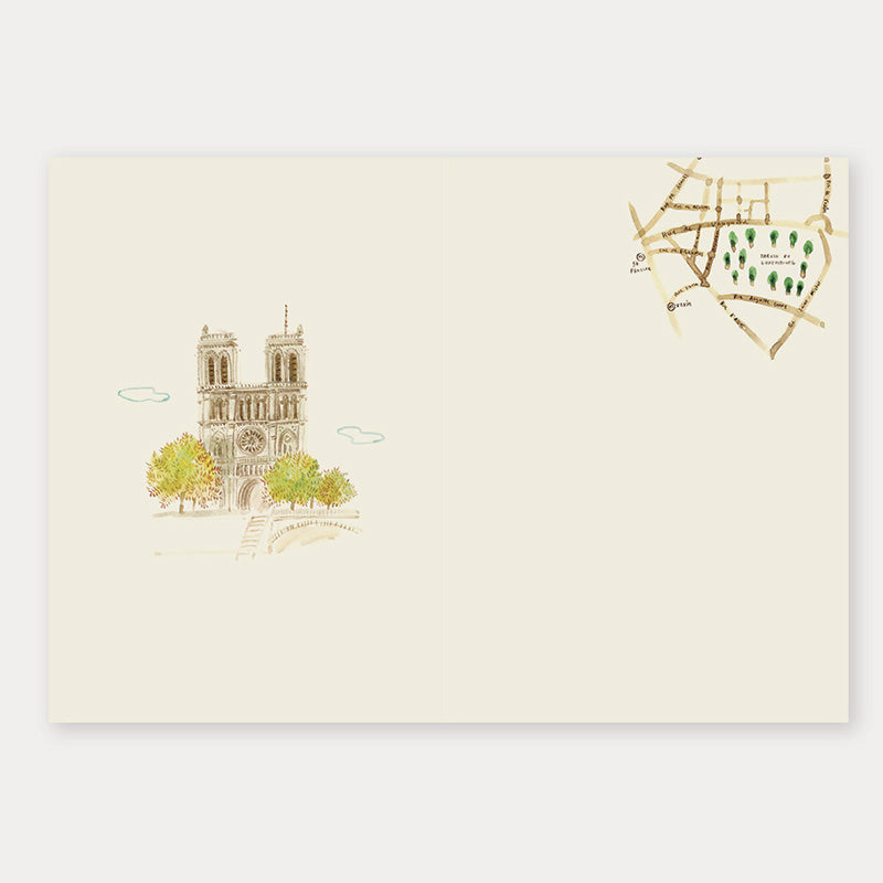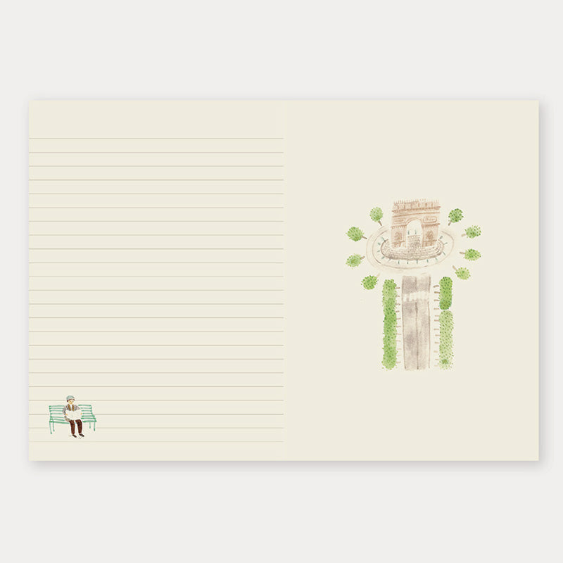 Pertenece a la colección L´après-midi, en la que la ilustradora Wooran muestras las ilustraciones realizadas en sus viajes. Son dibujos realizados con acuarela y una estética bellísima. En este modelo tendrás lugares icónicos de París.