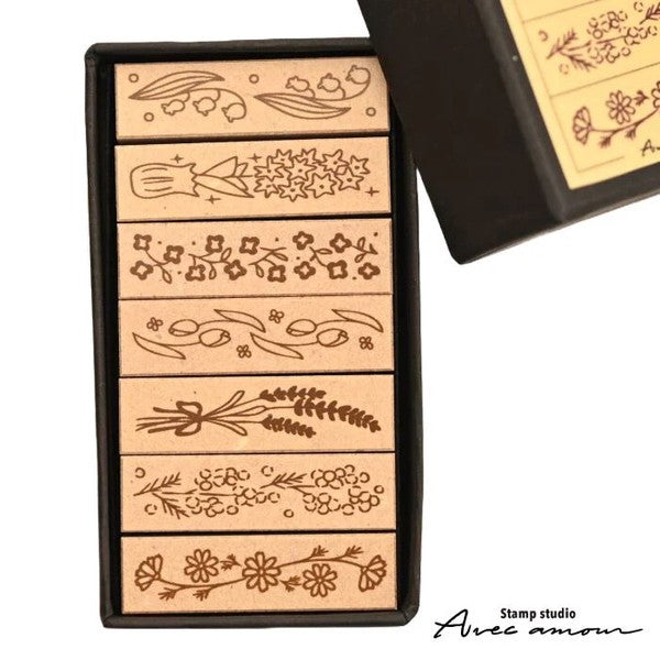 Set de 7 sellos de la marca Sanby, pertenece a la colección Avec amour.